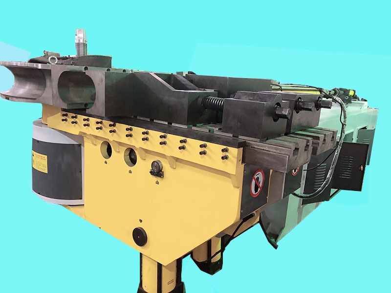 本機由主傳動機構(gòu)、芯棒機構(gòu)、頂料機構(gòu)、夾料機構(gòu)、電器系統(tǒng)及液壓系統(tǒng)等主要部分組成。工作時,由電動機帶動油泵旋轉(zhuǎn),供給壓力油,微電腦(PLC)發(fā)出指令,控制各電磁閥的開啟、關(guān)閉,使各油缸按一定順序和規(guī)律動作,以達(dá)到彎管的目的。